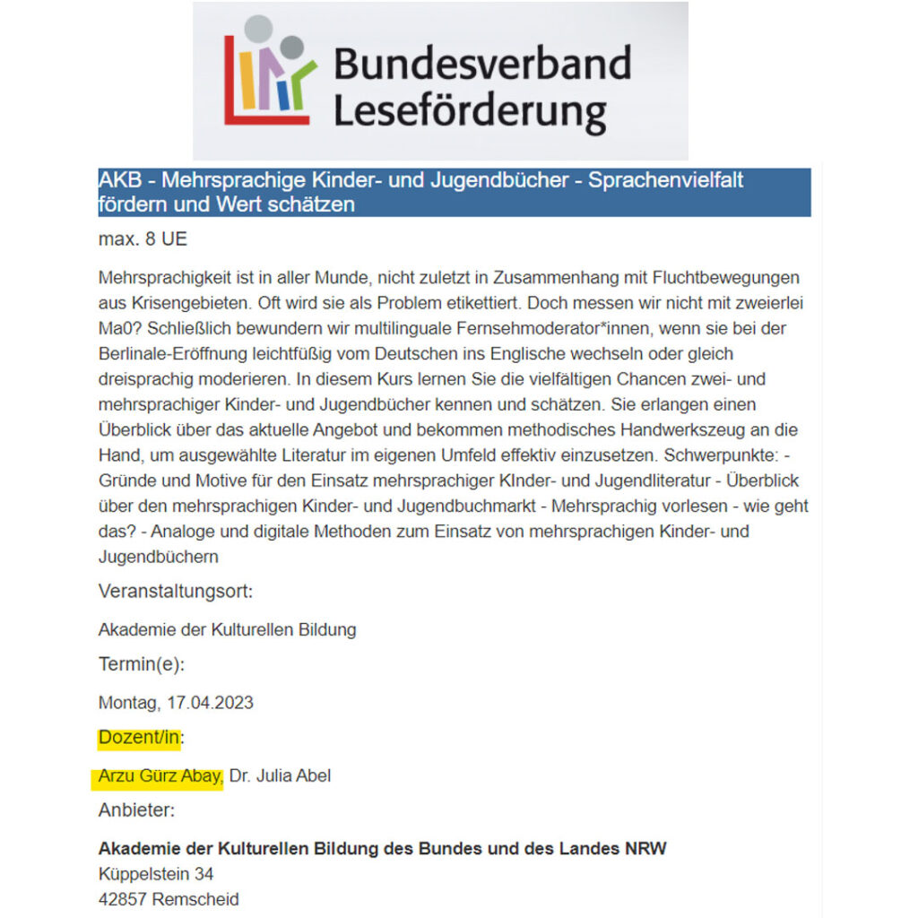 Ich möchte mich nochmal ganz herzlich für die vielen hilfreichen Impulse bedanken. Viele der von dir vorgestellten Bücher habe ich inzwischen gelesen und/oder eingesetzt. Deine lebenspraktischen Ansätze und Methoden, sowie dein fundiertes Hintergrundwissen haben mich bereichert und mir sehr dabei geholfen, mich beim Vermitteln mehrsprachiger Kinderbücher sicherer zu fühlen.